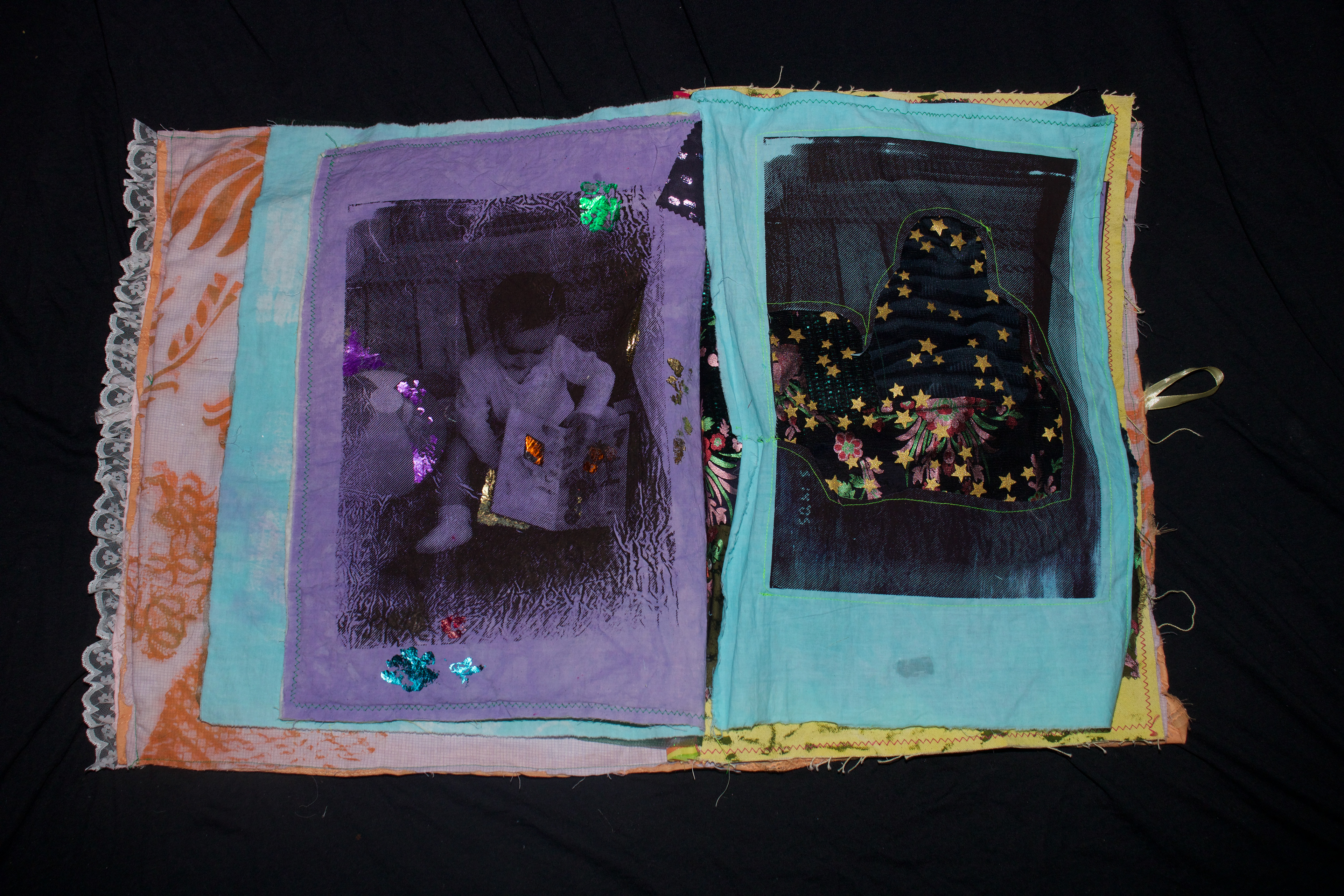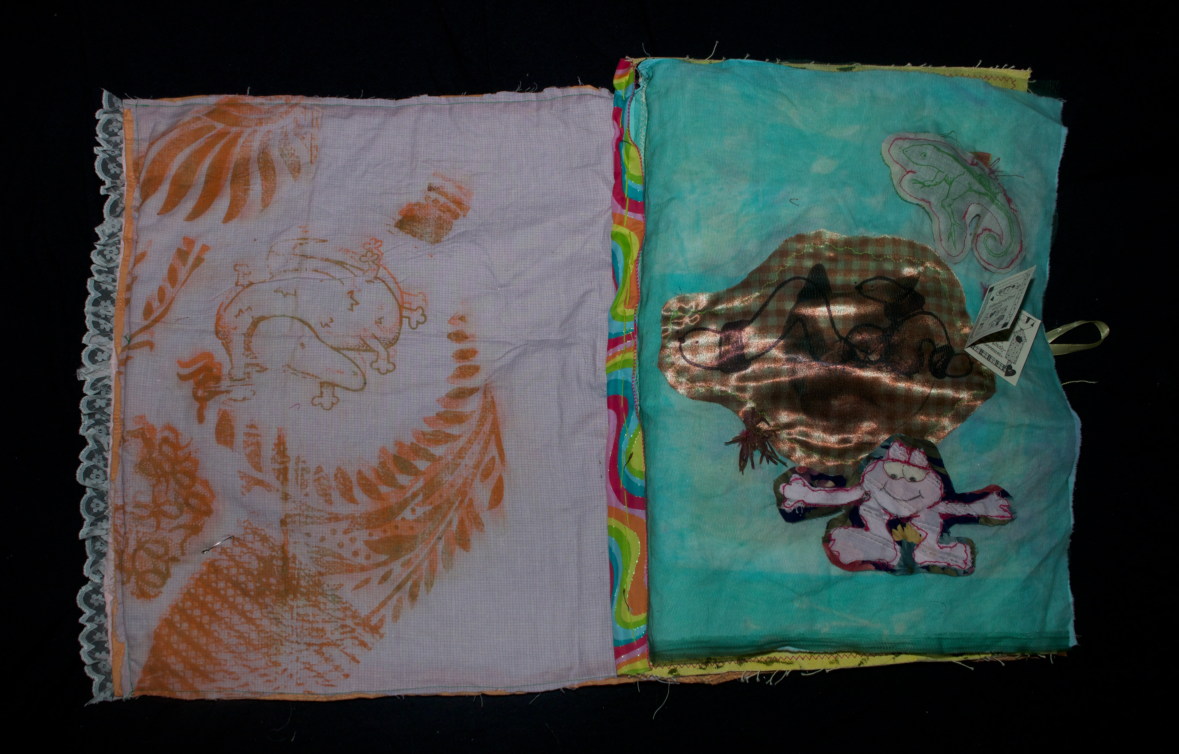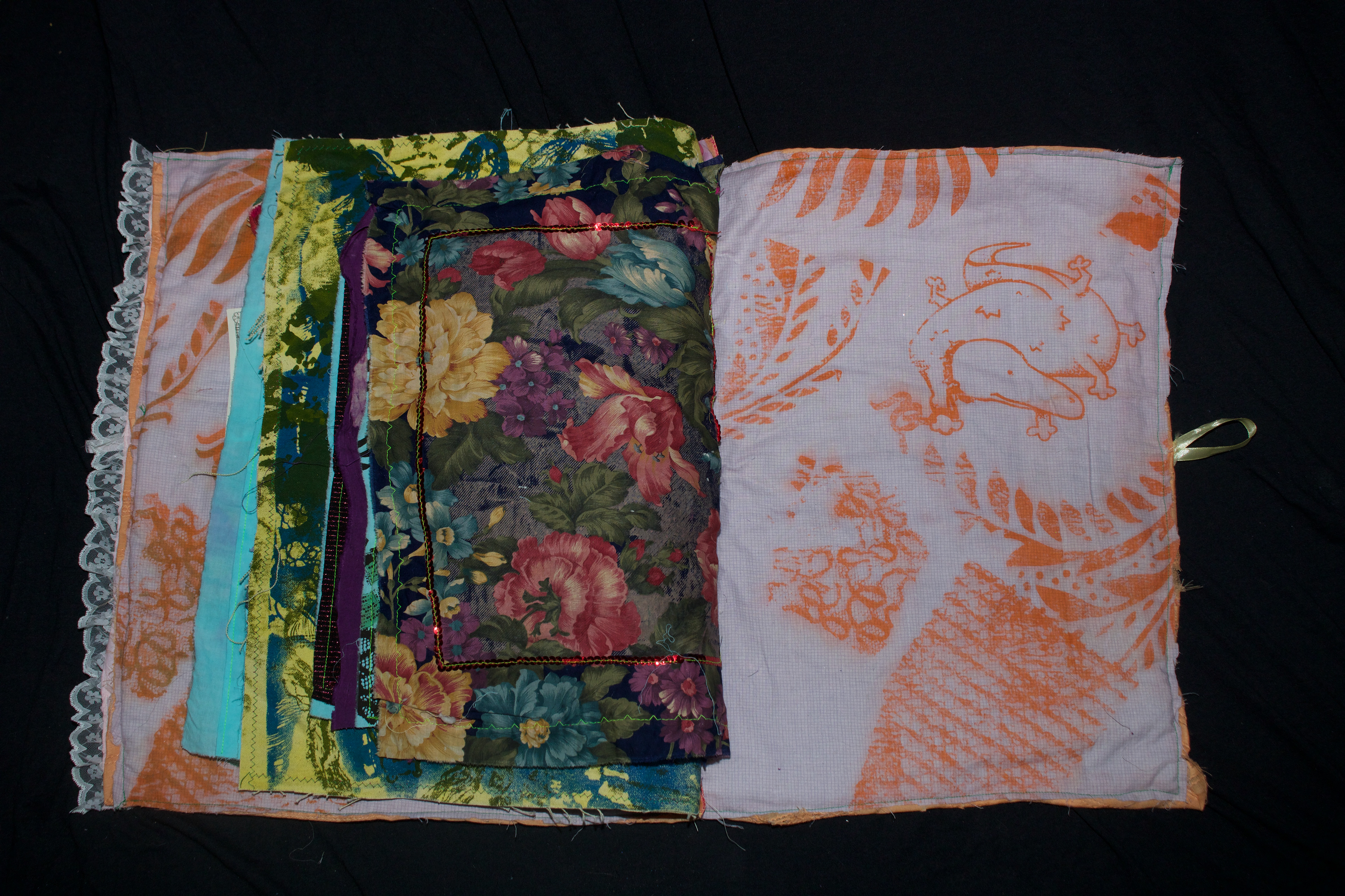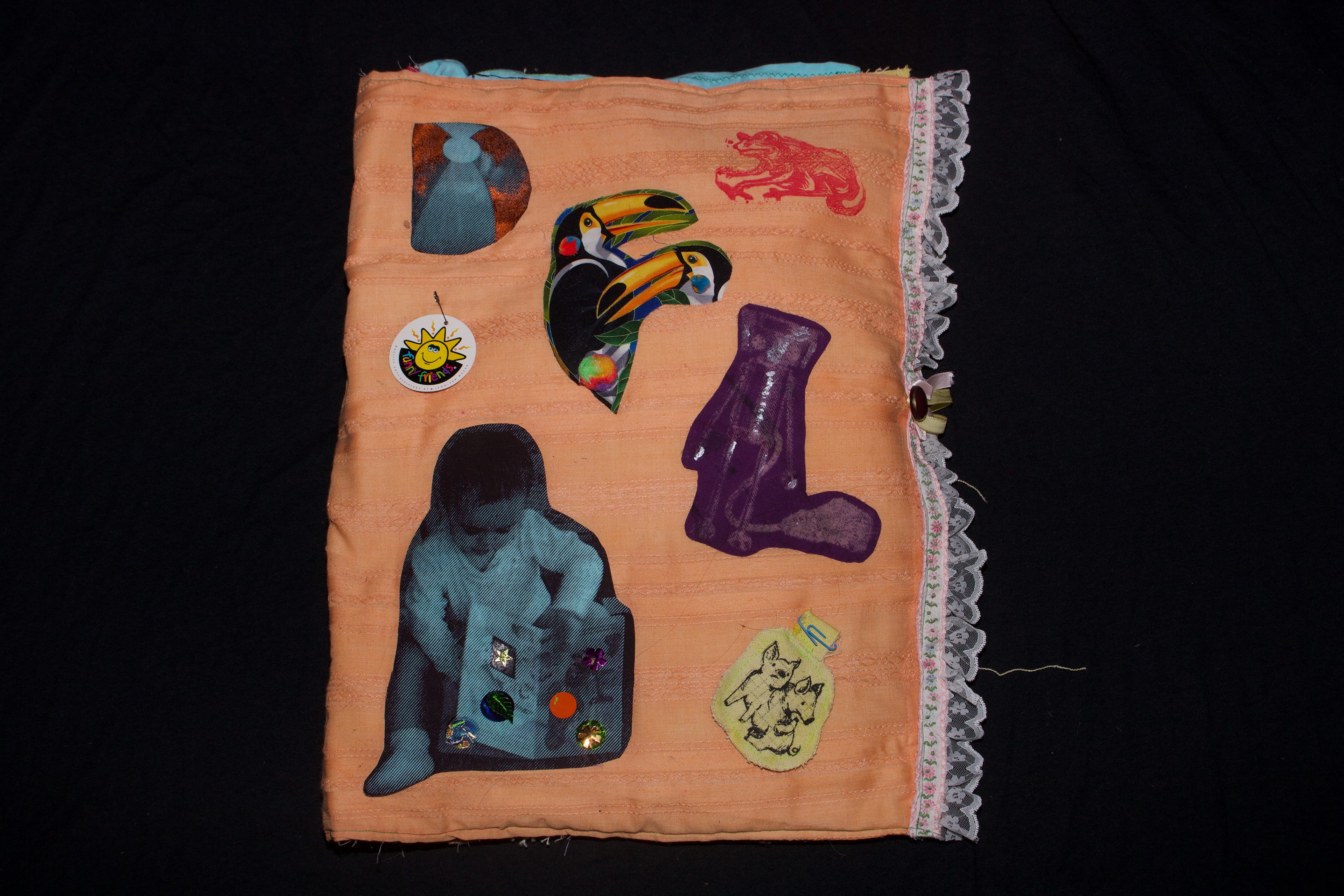 hand dyed cotton (MX), screen prints, stamps, assorted buttons, sequins, pom poms, dried flower, crochet, tassels, embroidery, beads, foil, dye sublimation prints, 31" x 37", 2025
