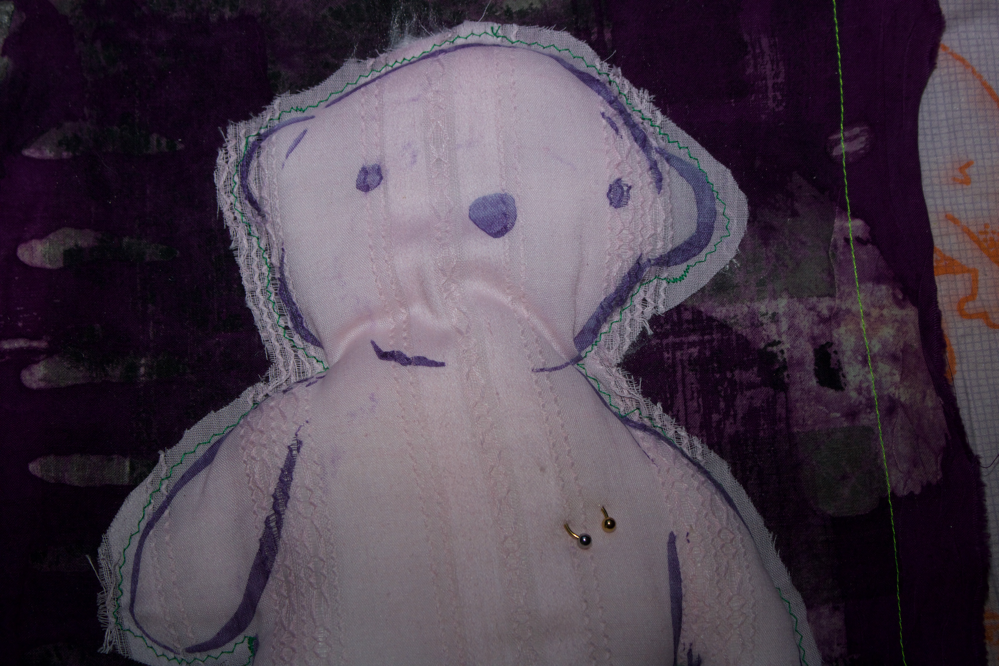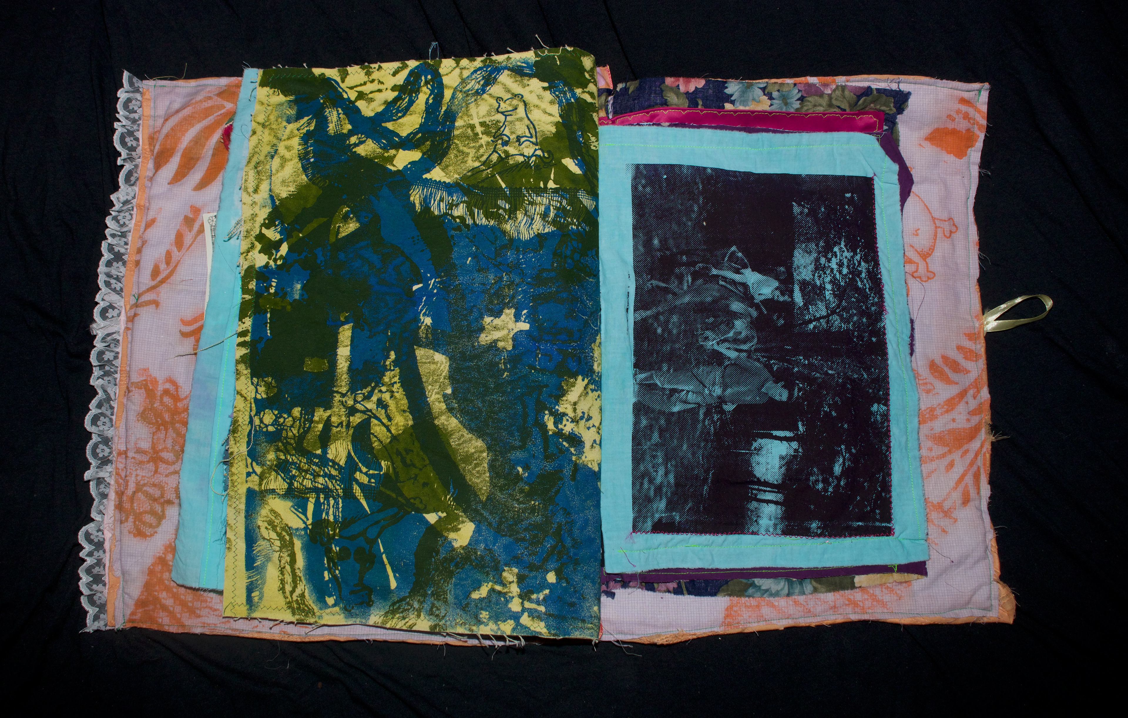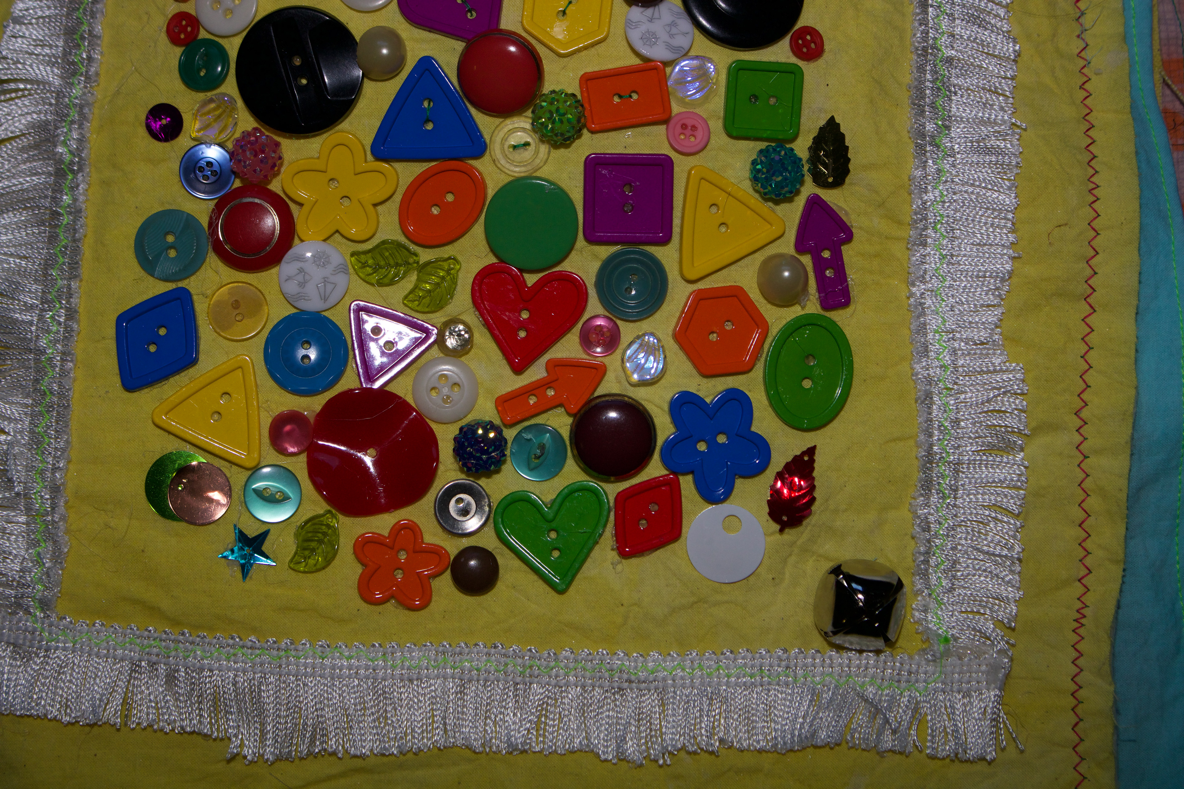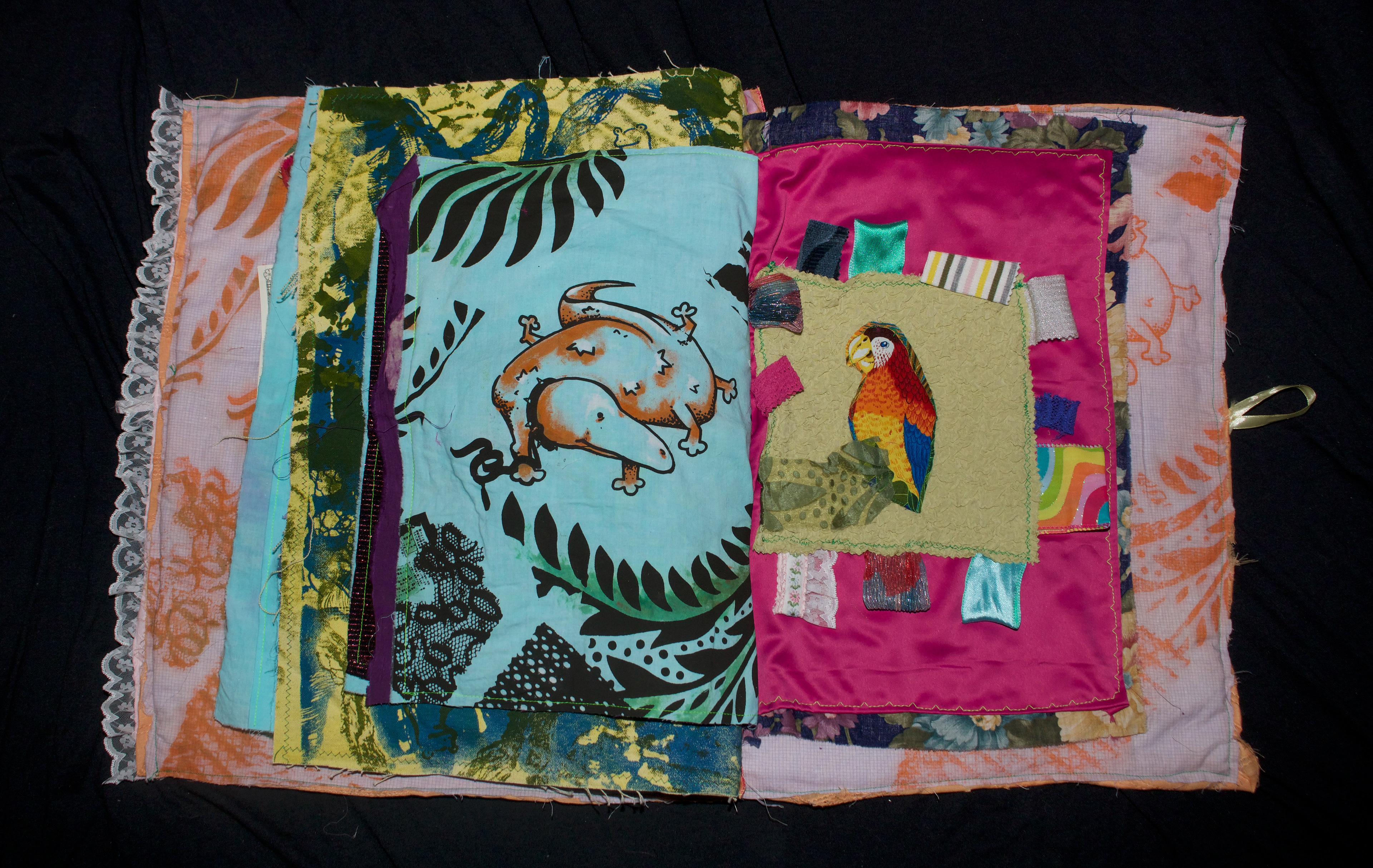 hand dyed cotton (MX), screen prints, stamps, assorted buttons, sequins, pom poms, dried flower, crochet, tassels, embroidery, beads, foil, dye sublimation prints, 31" x 37", 2025